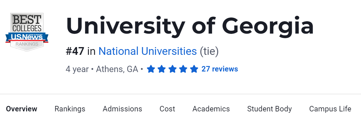 在2024年USNews美国大学排名中, 佐治亚大学排名第47。