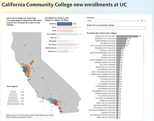 在2018年,从加州的转升大学(也叫社区大学)中,招收了2,186名转学生。其中,最多的大菠萝学院(DVC)一所转升大学,就有240名学生顺利转学进入加大伯克利。