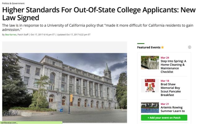 一般来讲,一所美国公立大学,每个外州学生学费带来的经济价值,是本州学生学费带来经济价值的三倍。所以外州,外国学生又好,又挣钱,这批加大就对外州学生的招收有所倾斜。这一倾斜不要紧,加州本地居民不干了。他们觉得,加大伯克利,加大洛杉矶,是我们州立人民的税钱建立的,凭什么让我们的孩子难进,便宜了外州,外国学生?
