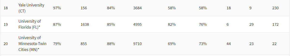 今年,共计有204所学校入榜,比去年多出47所学校,私立大学整体表现要优于公立大学,但还有美国不少顶尖学校未能上榜。