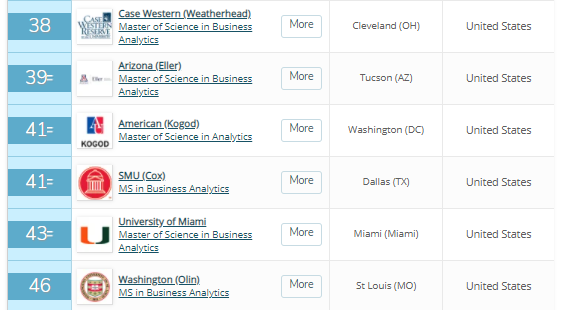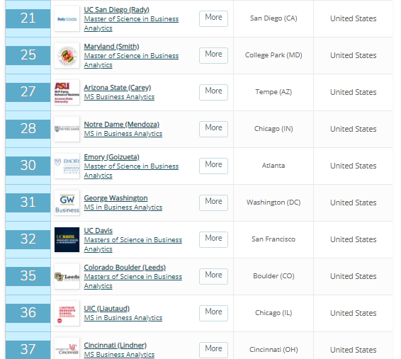 给大家一个2021年QS全球商业分析硕士排名前十的学校列表,可以看看你的学校排在哪里: