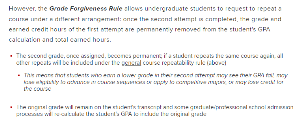 The Ohio State University允许Grade Forgiveness Rule只能使用不超过3次。对于课程成绩为PA, PE, S等不计入GPA的课程不适用。