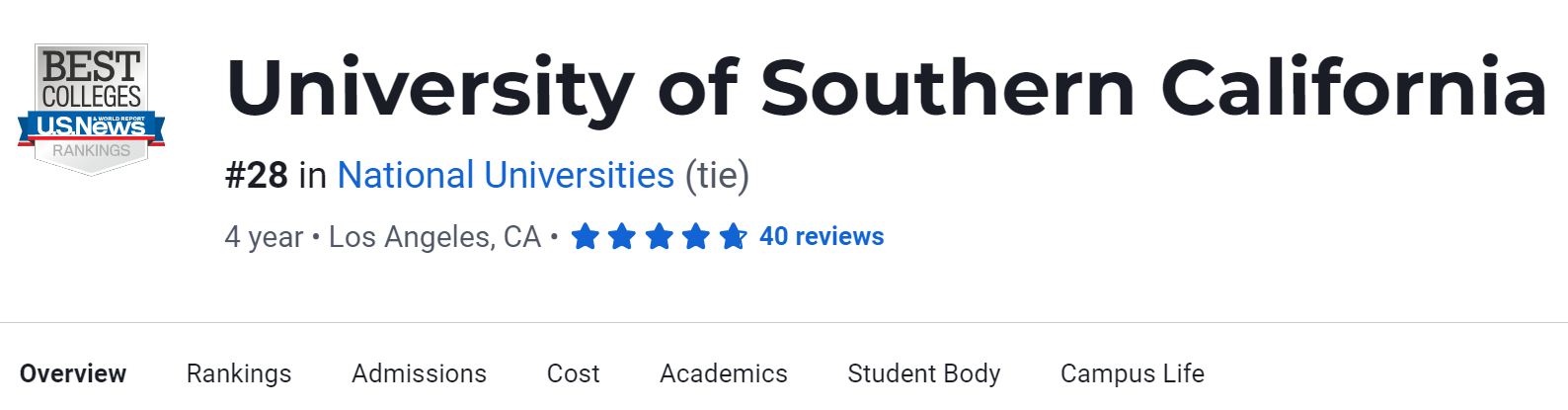 2024年U.S.News全美大学排名第28。