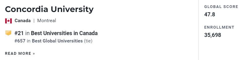 2024年USNEWS 加拿大大学排名中,康大位于第21名。