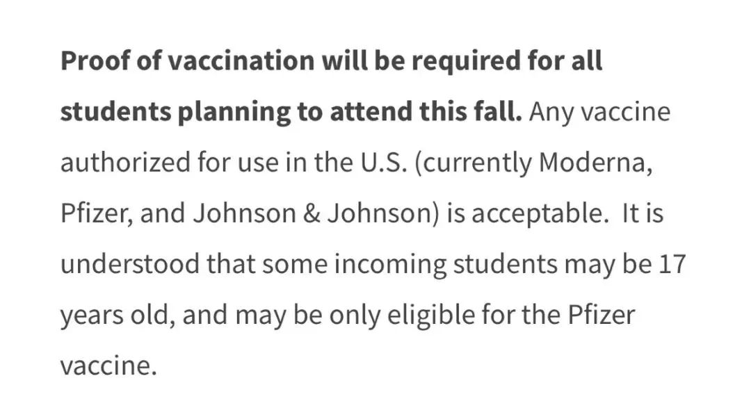 另外,不会进入校园的纯线上网课的同学不强制接种疫苗,学校还【强烈敦促】教师和工作人员也接种疫苗。