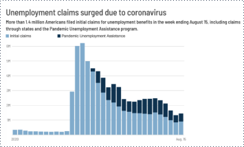首先是美国经济/就业的复苏,就业率开始回暖。从疫情最严重的时候有高达600万多的失业人数,降低到了100万以下。而且大部分的失业员工,更多的还是服务行业/旅游行业等。从形式上来看,失业率将逐渐缓慢降低。