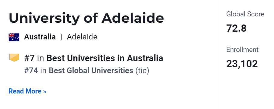 2024年, University of Adelaide位列U.S. News全澳第7、世界第74位。