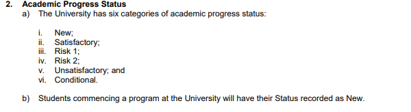 当学生的学术状态为Risk 1或Risk 2时,应当引起重视并尽快提高自己的学术成绩。学校也会提供相应的帮助和辅导来解决学生在学习中遇到的规定。如果学生的成绩没有进步,第三次未能达到学校的最低学术标准,学生将被停学。停学通常为1年。停学期满后,学生可以通过readmission申请回到阿德莱德大学继续读书。如果复学申请被批准,学生的学术状态将为Conditonal。