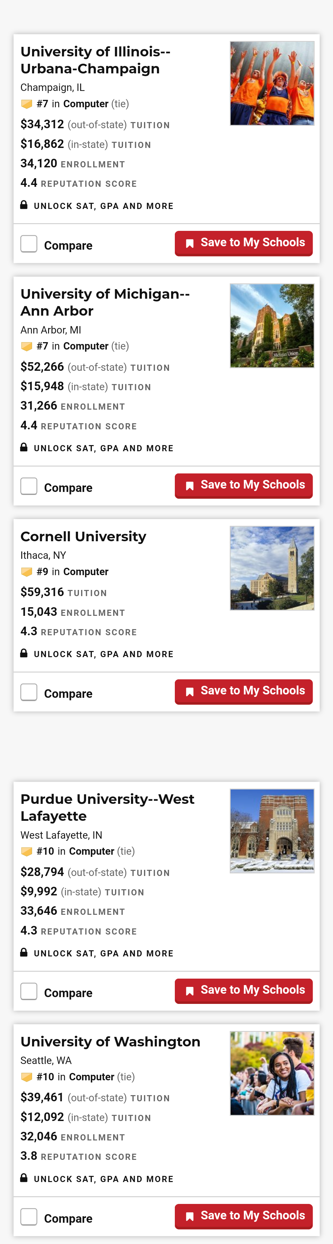 之前也说过,2021U.S.News排名首次对计算机专业进行了排名,我们再来看看计算机专业部分榜单:
