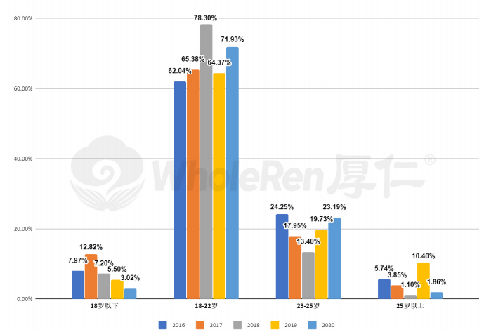 继2014-2019版白皮书后,2020版厚仁《留美中国学生现状白皮书》分析统计了1000例来自星空app官方网站手机版数据库的劝退数据。专题一将从被劝退学生的年龄和性别入手,分析赴美中国留学生被劝退的年龄分布与男女性别分布比例。