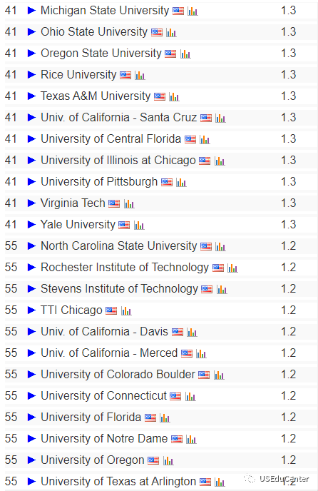 同时,也有几所在US.News美国大学排名不是很高的公立大学在计算机领域表现突出,甚至超越了麻省理工、芝加哥大学、哥大和耶鲁等藤校。