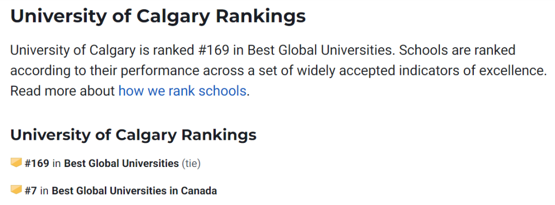 卡大在2022 U.S. News世界大学排名第169位,加拿大排名第7位。