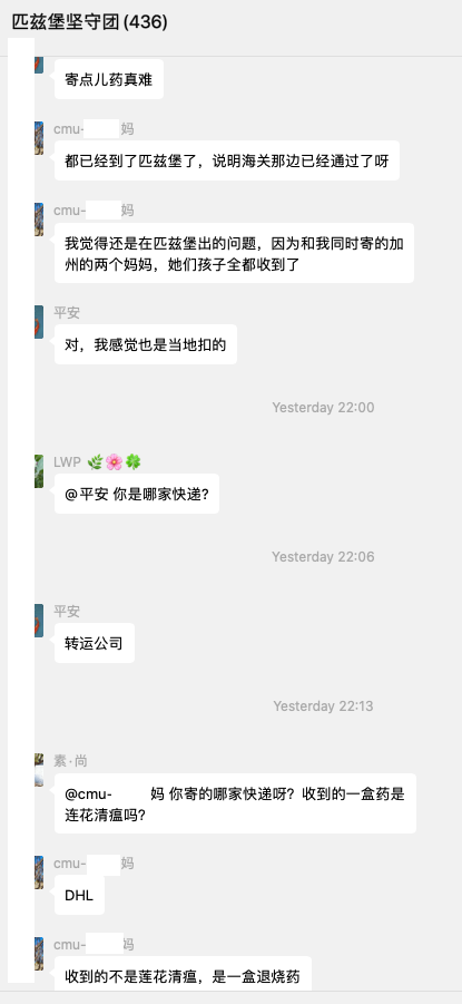 留学妈妈们能做的,只有寄点中药,抢抢机票,苦苦等待,看不懂英文的学校官网,就每天能看中文的美国校园疫情网,和在厚仁的70个疫情群里看简报总结和听消息,听信息核实,然后就在家长群里相互慰藉。画风都是这样的: