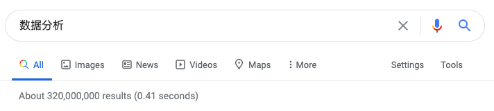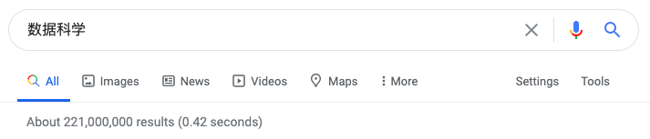 大数据,数据分析,数据科学,现如今带有数据的相关词汇频繁出现在各行各业中。使用搜索引擎可以看到在短短的半秒钟内,包含这三个关键字的搜索结果数量是以亿为单位。