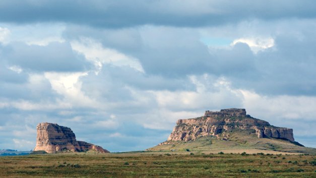 这两块巨石一大一小,被当地人称为法院(courthouse)与监狱(jail)。最高度为121米,相当于40层楼高。在一马平川的内布拉斯加大地上,这两块巨岩非常突兀的伫立在那里。在150多年前的西进时期,这两块巨石是开拓者的地标,大批的开拓者驾着帆布马车从这里经过,到达西海岸。