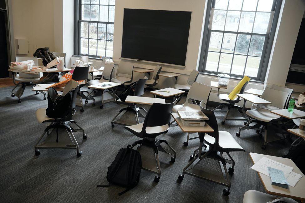 这是里面的一个教室,学生们工作一个上午,这个时候可能都吃饭去了。