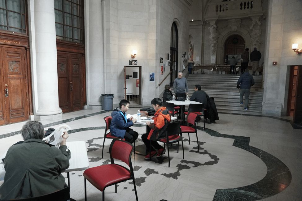 女生在二楼学习。CMU,课业很重,学霸很多。