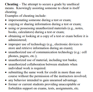 Saint Mary’s University致力维护学术诚信,任何违反学术诚信的行为都会收到严厉的惩罚。学校定义的学术不诚信行为包括但不限于: