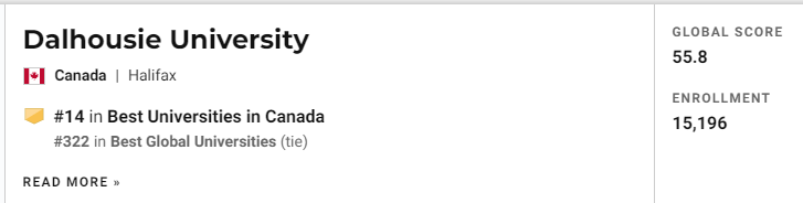 2020年USNEWS 加拿大学校综合排名中,达尔豪斯大学位于第14名。