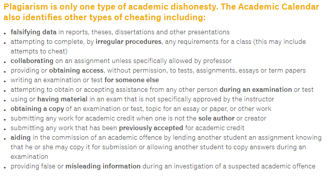 Dalhousie University 对于学术诚信相当重视,任何违反学术诚信的行为都会收到严厉的惩罚。每一位在校的学生和老师都应当遵守并维护校园的学术诚信环境。学校定义的学术行为不当包括:抄袭作弊,伪造学术数据,未被允许与他人合作完成作业,替人代考,提供虚假的学术记录等等。
