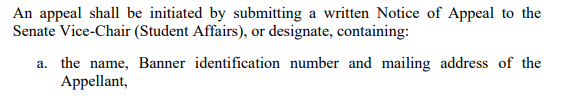 当学生面临学术诚信相关的处罚时,也请不要慌张。学校规定每一个学生都有申诉的权利。如果决定申诉,学生应当在收到判罚决定的15天内,向the Senate Appeals Committee提交书面申诉。申诉信中除了要注明申诉的原因外,还要详细解释事情的经过和证据,以及可以接受的处罚结果等。