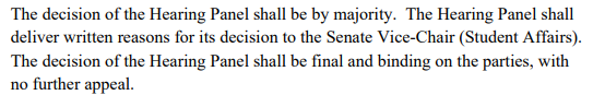 学校在收到学术诚信相关的申诉请求后,通常会通过听证会的形式,就学生的不诚信行为展开调查和举证,并在听证会结束后,给出申诉的结果。听证会的结果为最终结果,无法继续申诉。