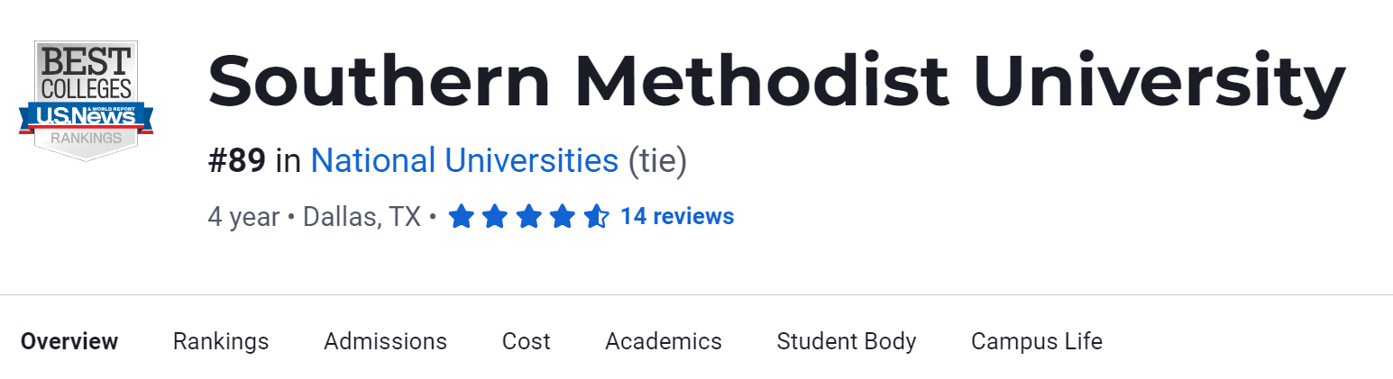 在2024年USNews美国大学排名中,SMU排名第89。