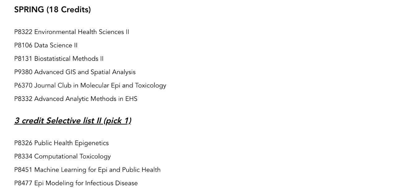 此项目设置在哥伦比亚大学尔曼(Mailman)公共卫生学院下的。学院开设此项目初衷是环境健康科学领域越来越依赖于使用大量复杂的数据源,那么了解如何处理、分析和解释在环境健康背景下使用的数据已迅速成为一项非常有价值但很少在此领域教授的技能。此项目提供环境健康数据科学理学硕士 (MS) 课程,旨在教育环境健康领域的学生,提供处理和分析环境健康科学中使用的这些复杂环境健康数据源所需的定量技能,包括地理空间建​​模、高级统计和数据管理邓。整个项目除了完成课程作业,考试和项目外,还可以通过完成最后论文获得宝贵的实践经验,论文研究项目围绕学生通过处理数据,将他们学到的技能应用于环境健康问题。