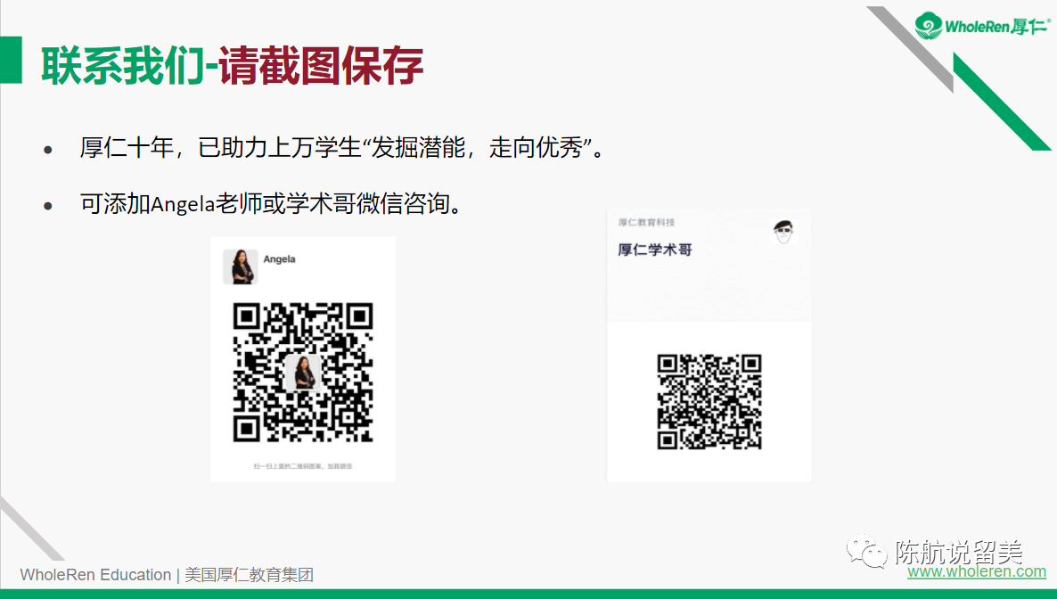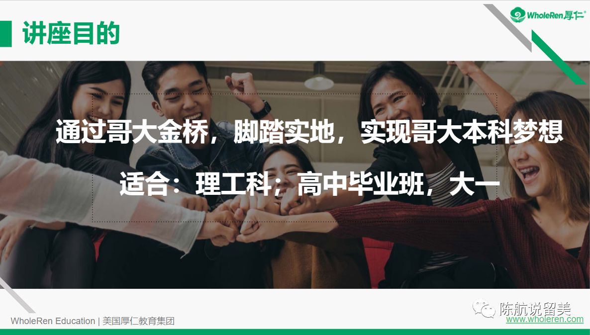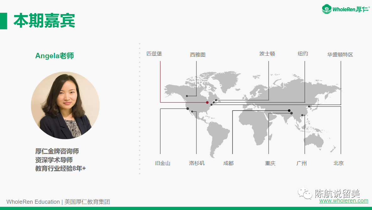 感谢各位家长和同学观看11月06日的《哥大种子校与STEM转学详解》讲座,本次讲座特邀嘉宾厚仁金牌咨询师、资深学术导师–Angela老师给大家分享相关经验。
