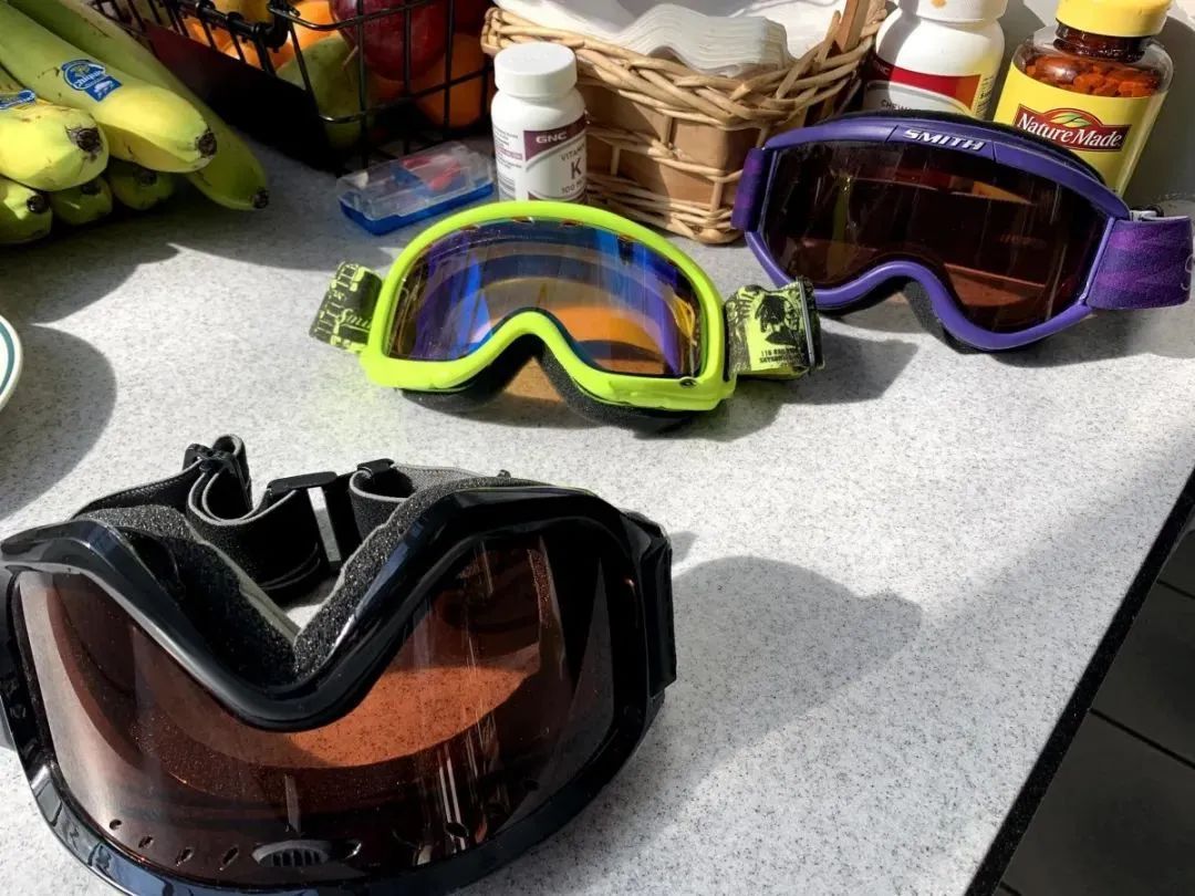 准备行程了,美国买不到护目镜。女儿把我们前几年滑雪的眼镜拿出来让Jack挑。Jack 挑了最前面的那个。这个滑雪镜比较大,有海绵而且透气,不影响戴眼镜。