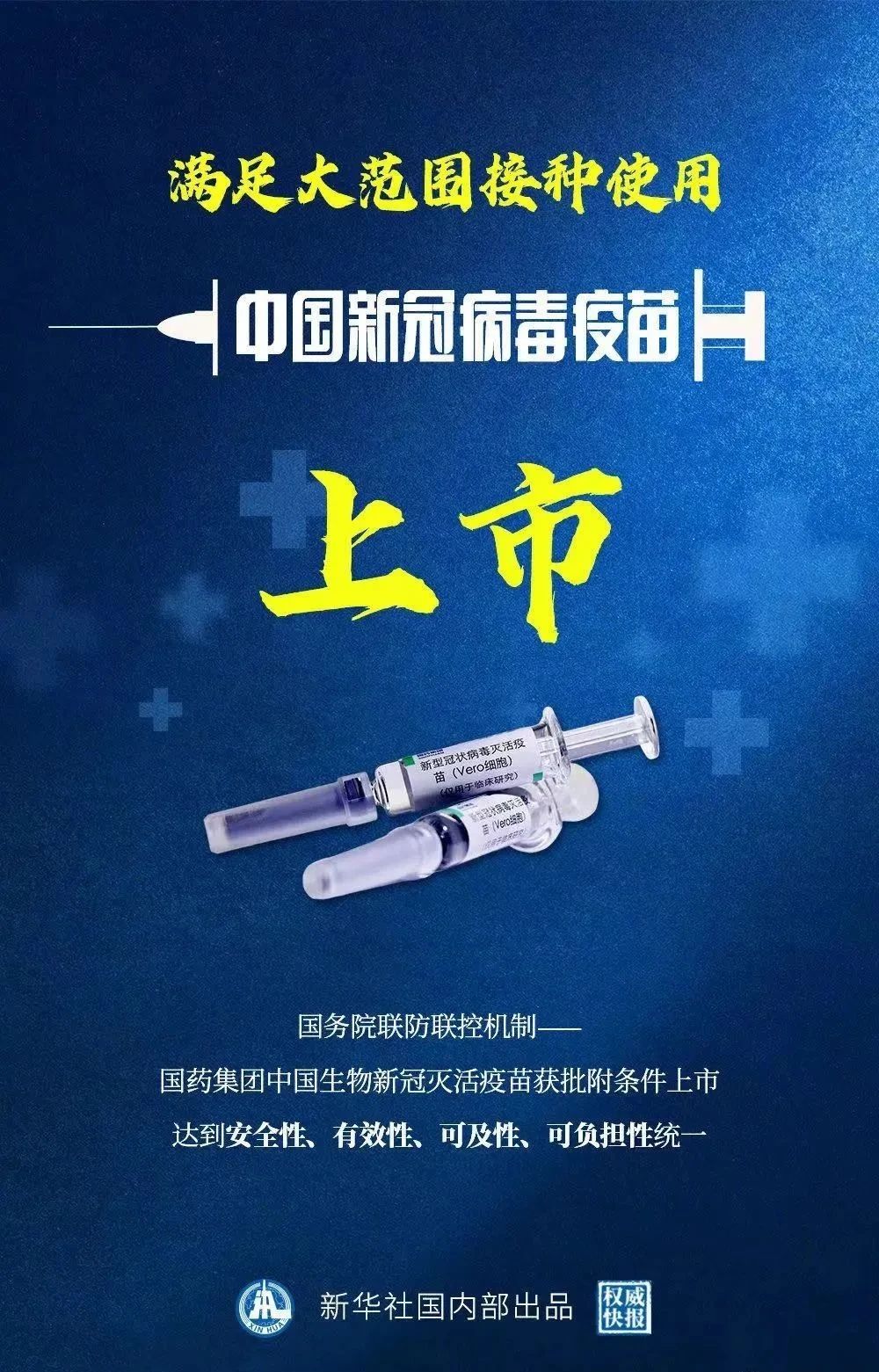 据新华社消息,国务院联防联控机制发布,国药集团中国生物新冠灭活疫苗已获得国家药监局批准附条件上市。