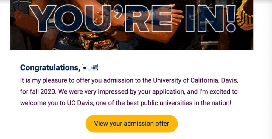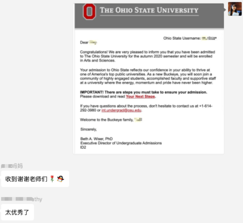 最终,W同学拿到了加州大学尔湾分校、加州大学戴维斯分校、俄亥俄州立大学、乔治华盛顿大学等多所知名院校录取。