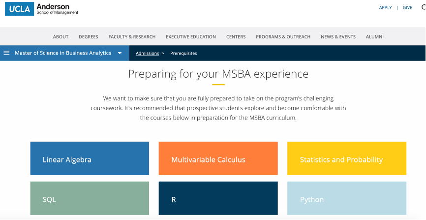 1.https://www.anderson.ucla.edu/degrees/master-of-science-in-business-analytics/admissions/prerequisites