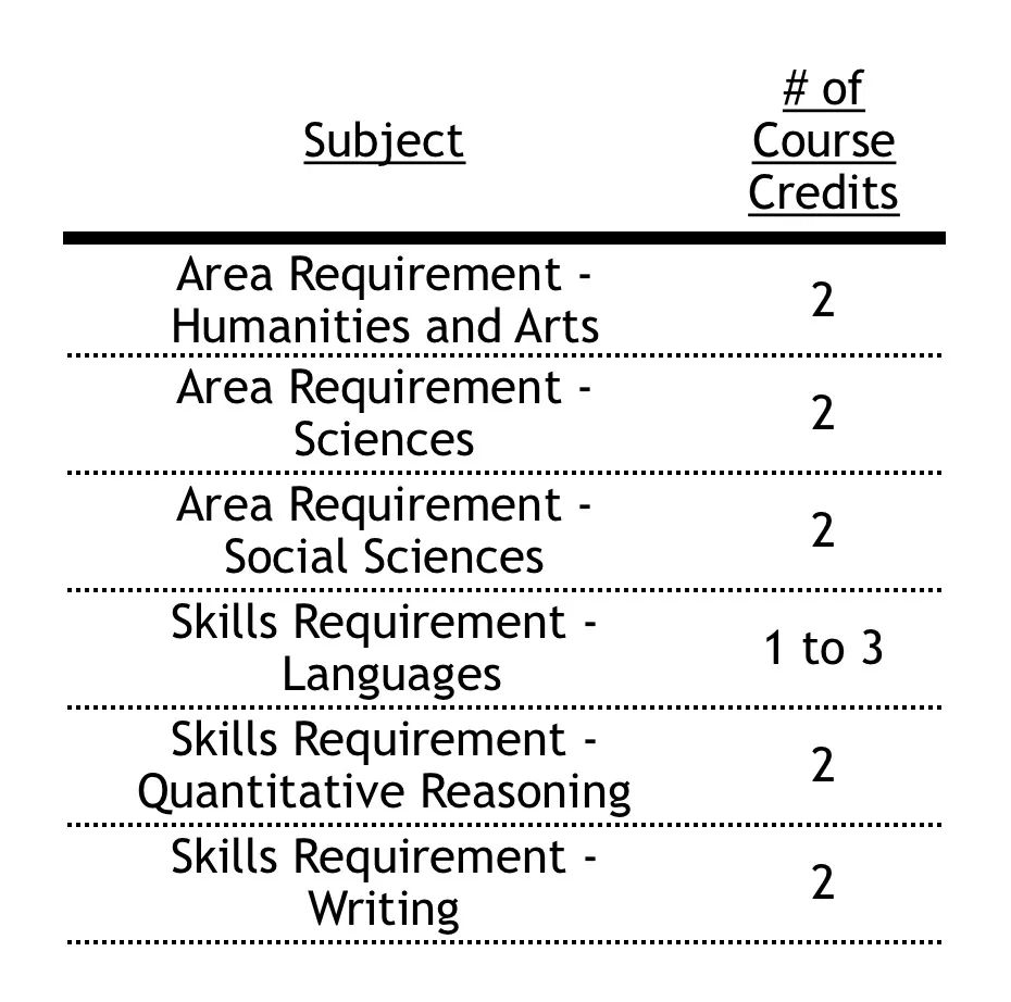 换句话说,一个学生要毕业的36个学分中,有11-13个学分(取决于语言成绩)属于核心课程。同时,学生修读的课程既可以计入学生的专业要求,也可以计入分配要求。由于大多数人的专业要么是人文、艺术、科学、社会科学、语言或量化学科,因此绝大多数学生将能够重复计算课程,这意味着核心课程将有效地成为课程的10/36,或成为本科学位毕业要求的更少学分。