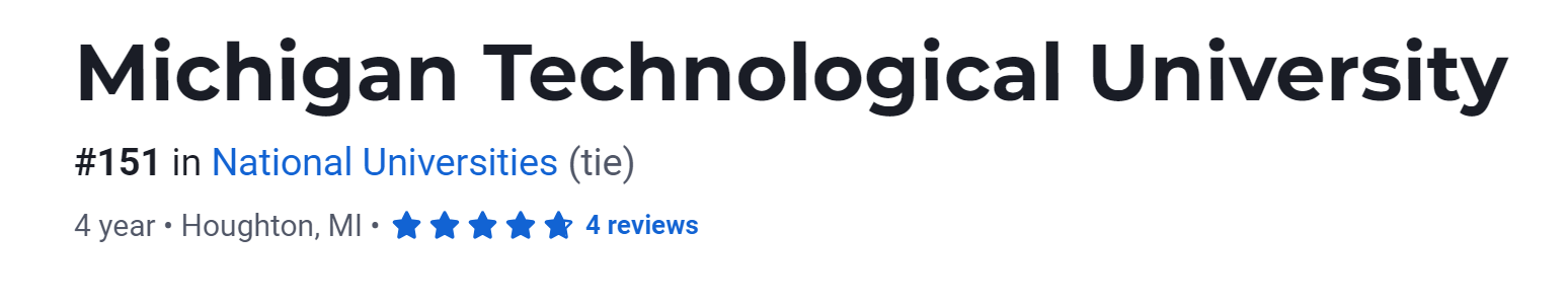 在2024 US News美国大学排名中,MTU位于第151名。