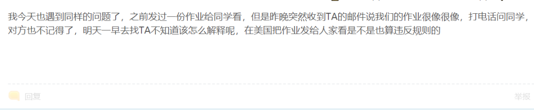 而认为不应该借的同学则表示,由于美国大学在处理作业抄袭时,会认为被抄袭者是自愿的,因此一并处分,这时作业抄袭对两个人来说都有极高的风险。