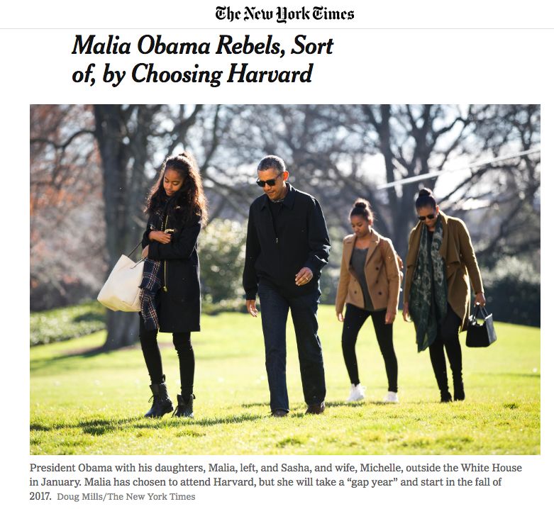( 纽约时报报道奥巴马女儿进哈佛)