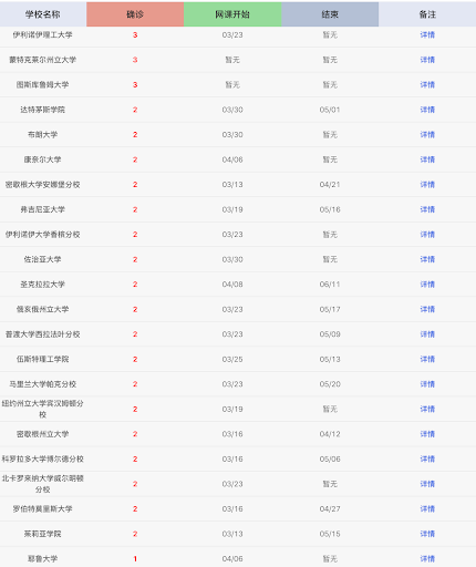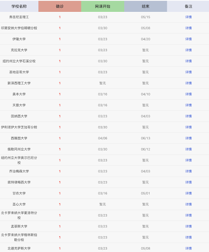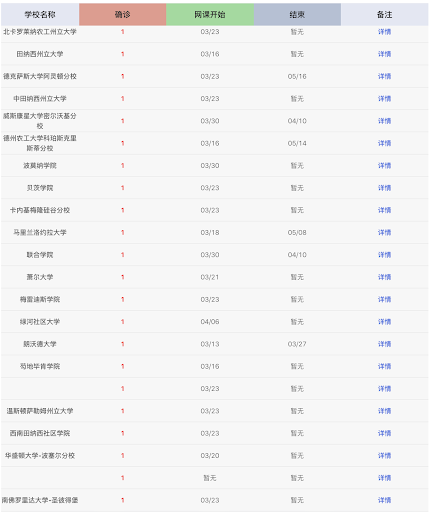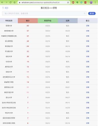 我解释说,这只是美国发现疫情的校园名单,按照确诊案例多少排列。这里共有美国的300多所大学,后面有校园政策,课程更新,没有发现确诊案例的学校也有。为了查找方便,完全是按照案例多少排列的。