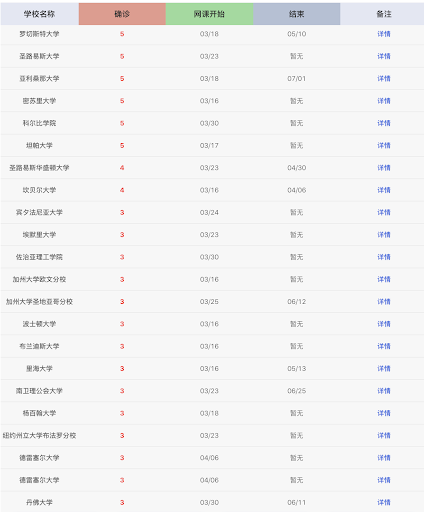 这位妈妈问的我一脸懵,什么大学排名?然后留妈妈解释说了:“你看,2020年4月1日的数据,这前十名大学有:哈佛大学第一,普林斯顿大学第二,华盛顿大学西雅图分校第三名,波士顿学院第四,斯坦福大学第五,乔治敦大学第六,纽约大学第七,杜克大学第八,美利坚大学第九,犹他大学第十。