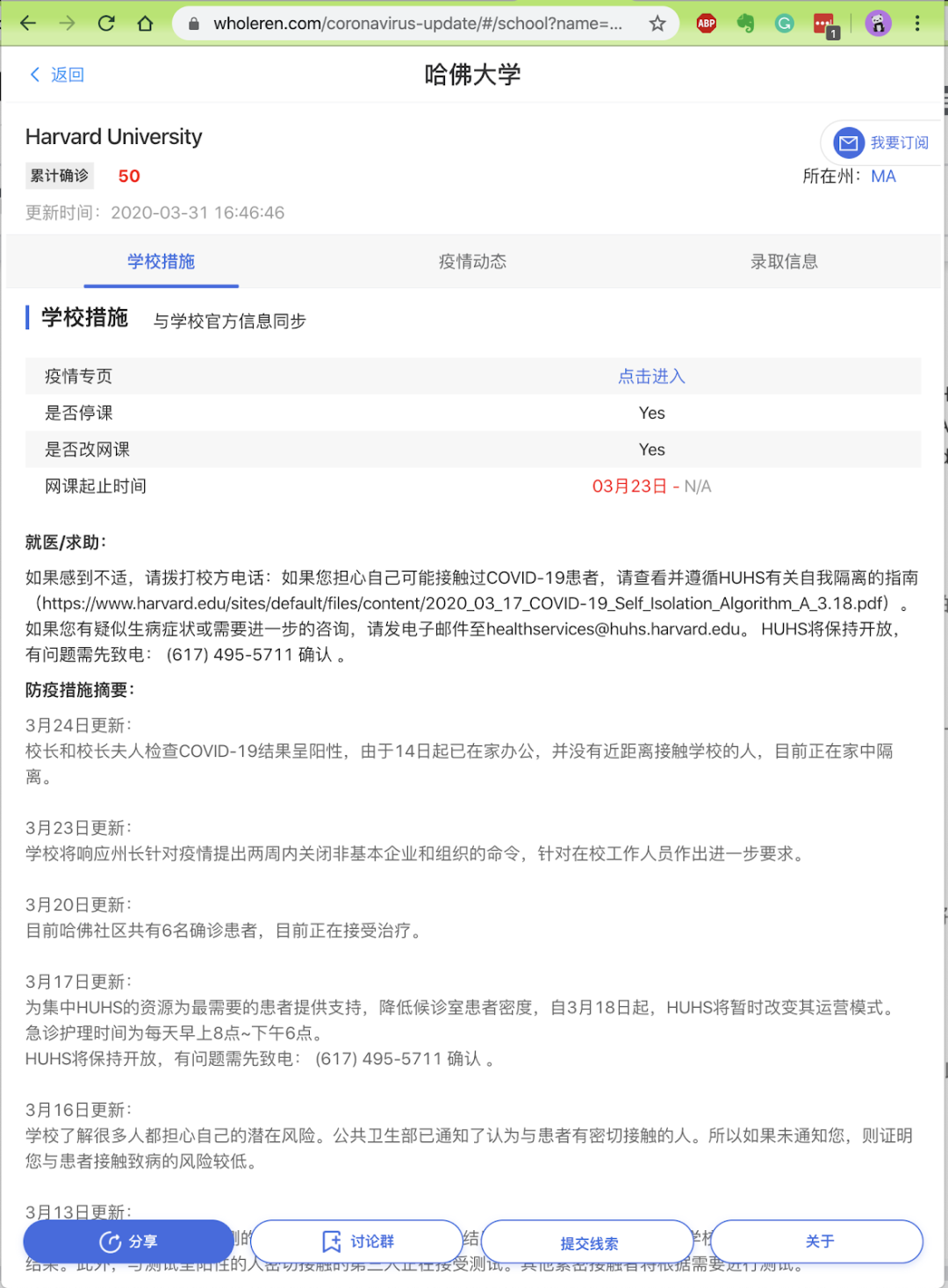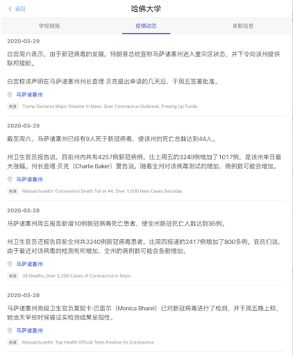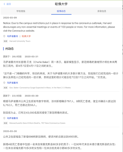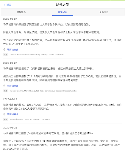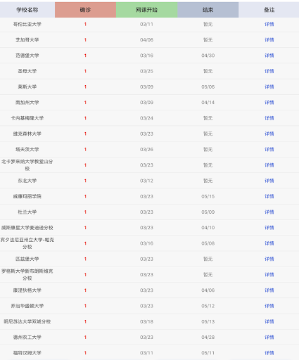 美国校园疫情发展很快,不仅人数多,课程和行政规则也多,所以疫情开始后,每所大学几乎每天都有疫情和校园政策的更新。厚仁的美国校园疫情网,同步记录美国校园疫情的最新进展。而且,一定要赞扬一下我的厚仁同事的敬业,每个新闻信息,都来自原始信息源,总结,翻译成中文,并附上了源网址,便于核对和进一步了解。在这个谣言满天飞的时候,真实的信息尤为重要。我自己上个月就也曾经被假信息忽悠过:实地辟谣!冠状疫情并未出现在CMU卡内基梅隆大学!文末有留美家长福利