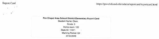(学区开的儿子5年级结束的成绩单)
