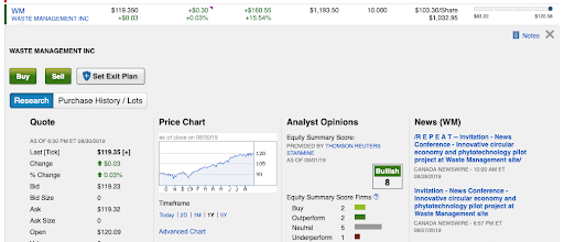 于是我偷偷和儿子商量,咱不当垃圾管理WM(美国最大的垃圾处理公司)的司机,可以当他们老板呀。就这样,他在自己的教育金投资账号里买了10股WM的股票。如今他的1000美元,已经涨了15%。
