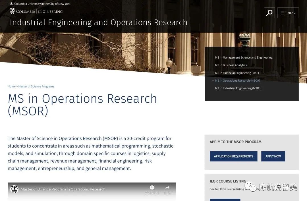 哥伦比亚大学的MSOR项目开设在工程学院里。