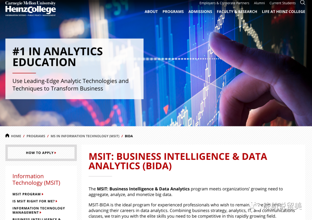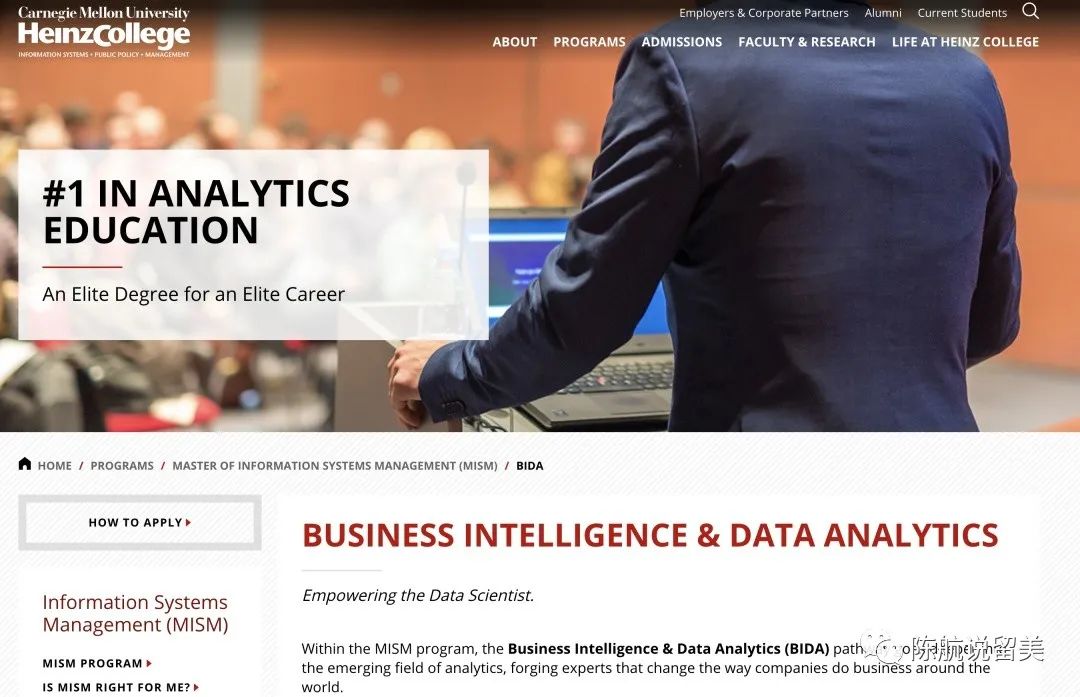 前面提过,BIDA专业是CMU自2016年以来独创的明星专业,比大数据和统计专业更加实用。该专业所在院系比较特别,叫MISM-BIDA,是CMU一个老牌科系。对CMU不了解的学生可能不太清楚,这就要从BIDA的“出身”讲起。