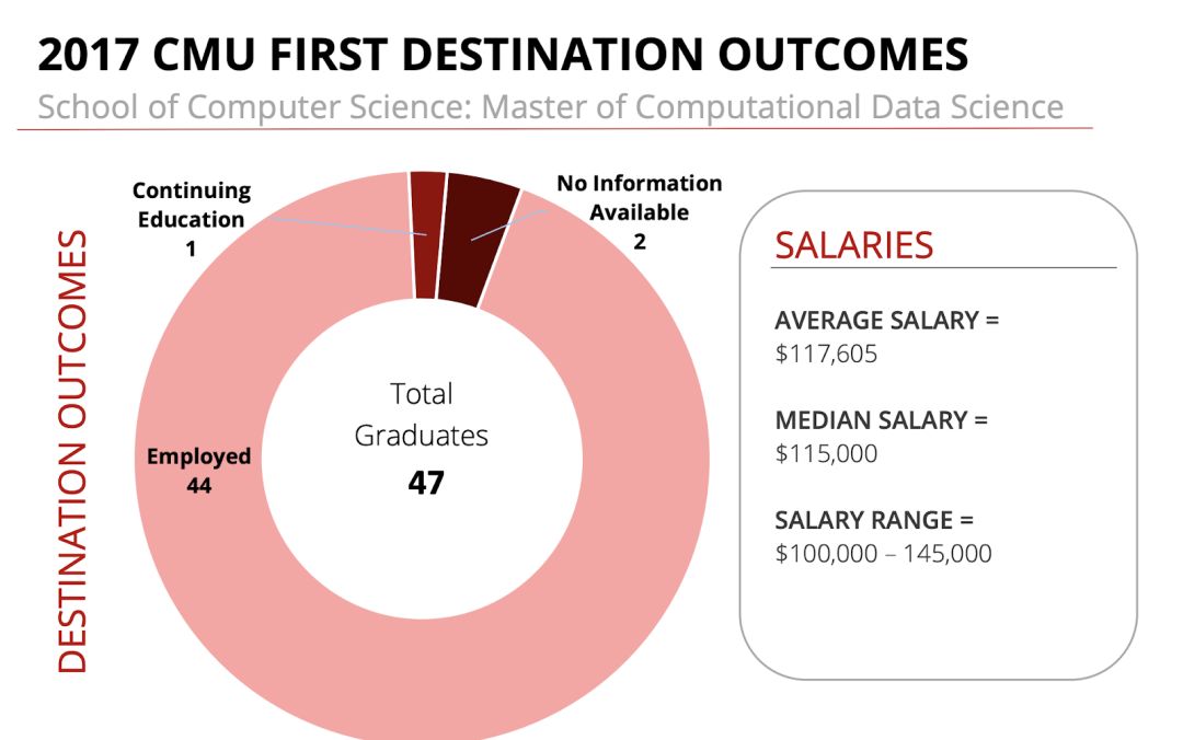 综上所述,CMU计算机系的 数据分析 专业,将来就业方向基本100%进入技术行业,从事技术工作。收入水平,也是我们介绍的数据分析专业中最高的。原因很简单,这是最硬核的数据分析专业 – 计算数据科学硕士。