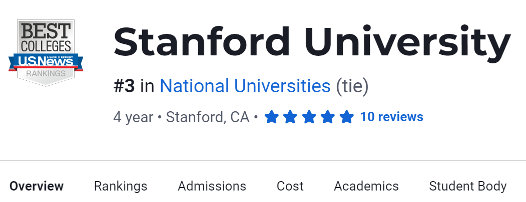 在2024 US News美国大学排名中,斯坦福位于第3名。