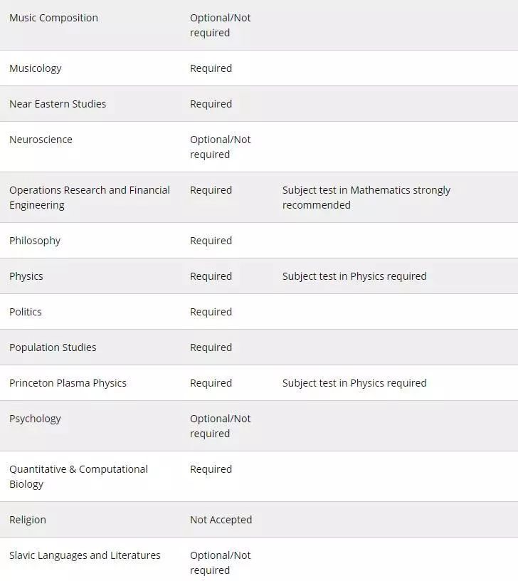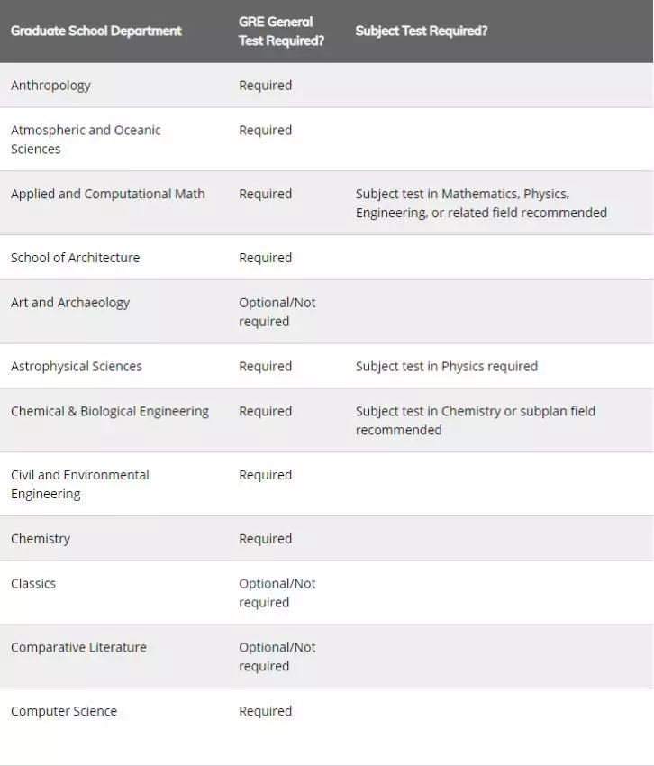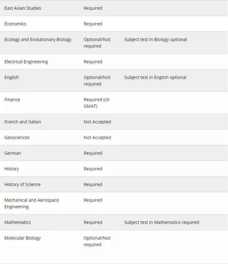 以下是普林斯顿大学完整的GRE需求清单: