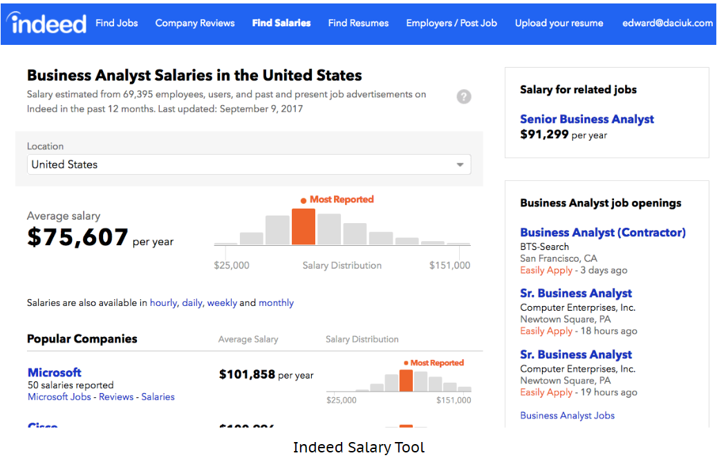 如果以美国毕业的BA专业学生薪资的统计数据为准,比较有参考价值的统计数据如下(数据来源:求职网站Indeed),Business Analyst的平均薪酬是75544美刀,Senior Business Analyst的平均薪酬是91293美刀,Analytics Manager的平均薪酬是106197美刀。