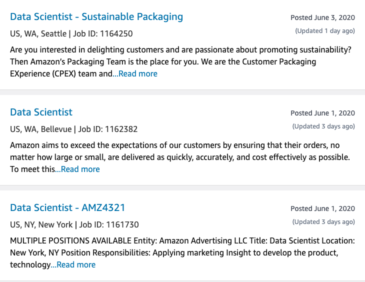 (Amazon西雅图总部最近放出的职位)