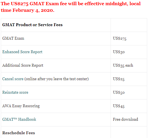 除此之外,GMAC最新消息表明,自2020年2月4日起,北美地区(美国和加拿大)的GMAT考试预约报名费将从250美元增长至275美元。